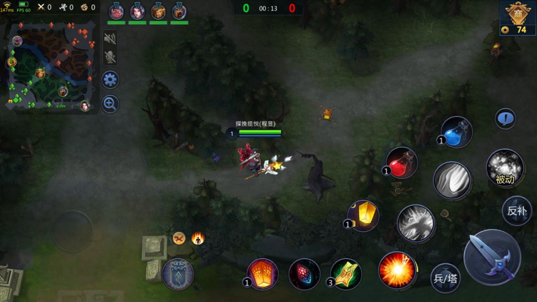 3. 前期有点控型技能的英雄(如程昱)开局躲在优势路野区商人旁边的树林深处, 等对面开始补兵,走出来配合队友很容易拿掉这个人头。