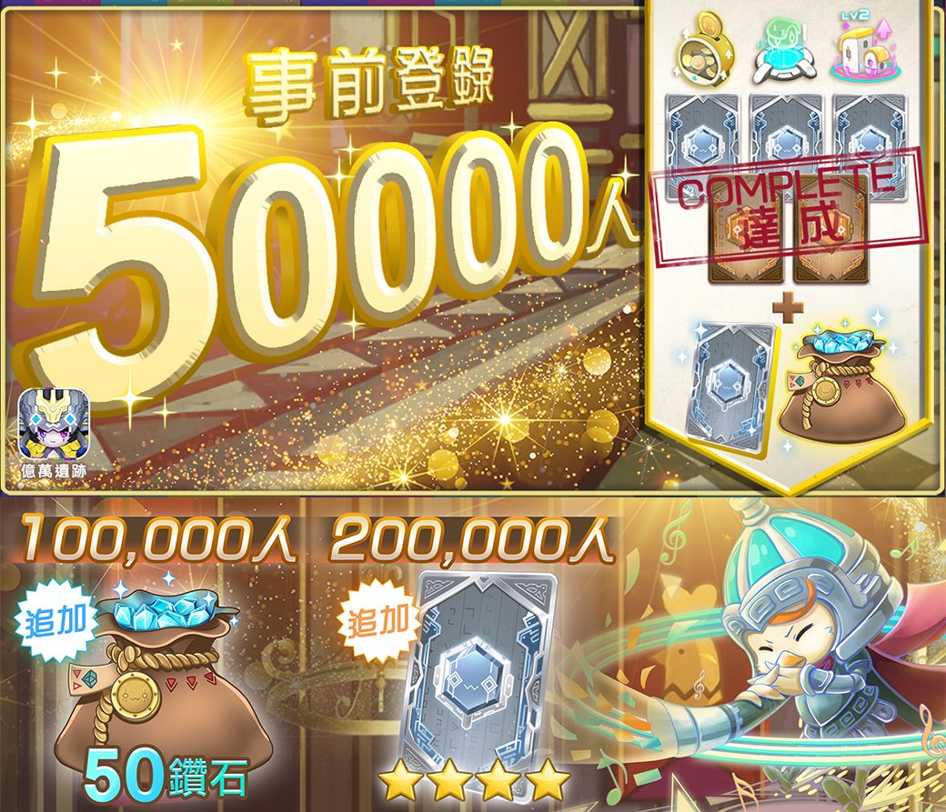事前登录人数达50000人 - 再加送4星卡1张 (已达成)