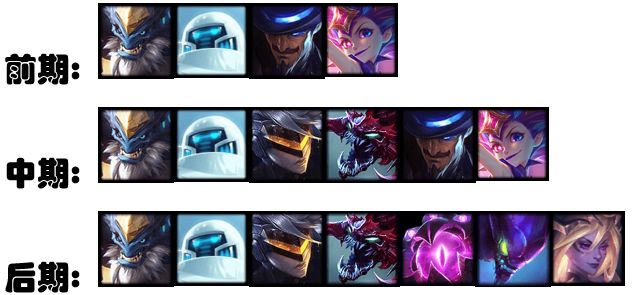 阵容成型打重装、斗剑都很好打,比较惧怕机甲刺,中后期打赵信、剑圣还是可以的,但是大后期还是会由于输出不够而变得艰难。