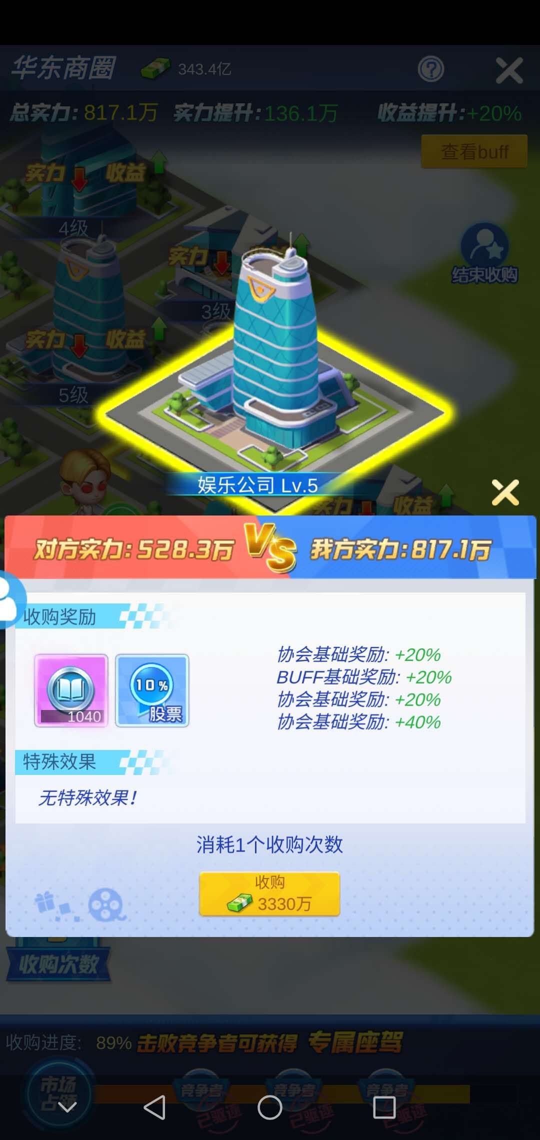 挑战不吃力和打完第三个boss的情况选择:收购成功+20%基础奖励>收购完成+20%黄金>其他。