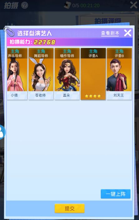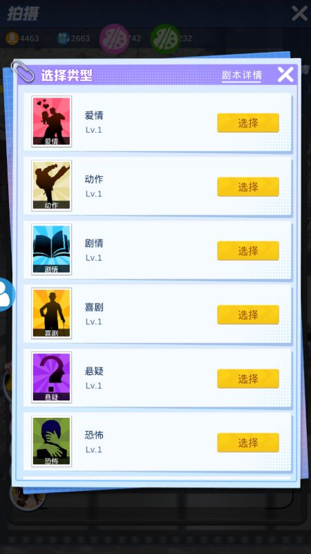 点拍摄之后会出现三个电影选项,注意先看第一个电影角色需求,如果有艺人不达标就要注意该类艺人的收集提升(艺人收集传送门:https://www.taptap.com/topic/11276197)。