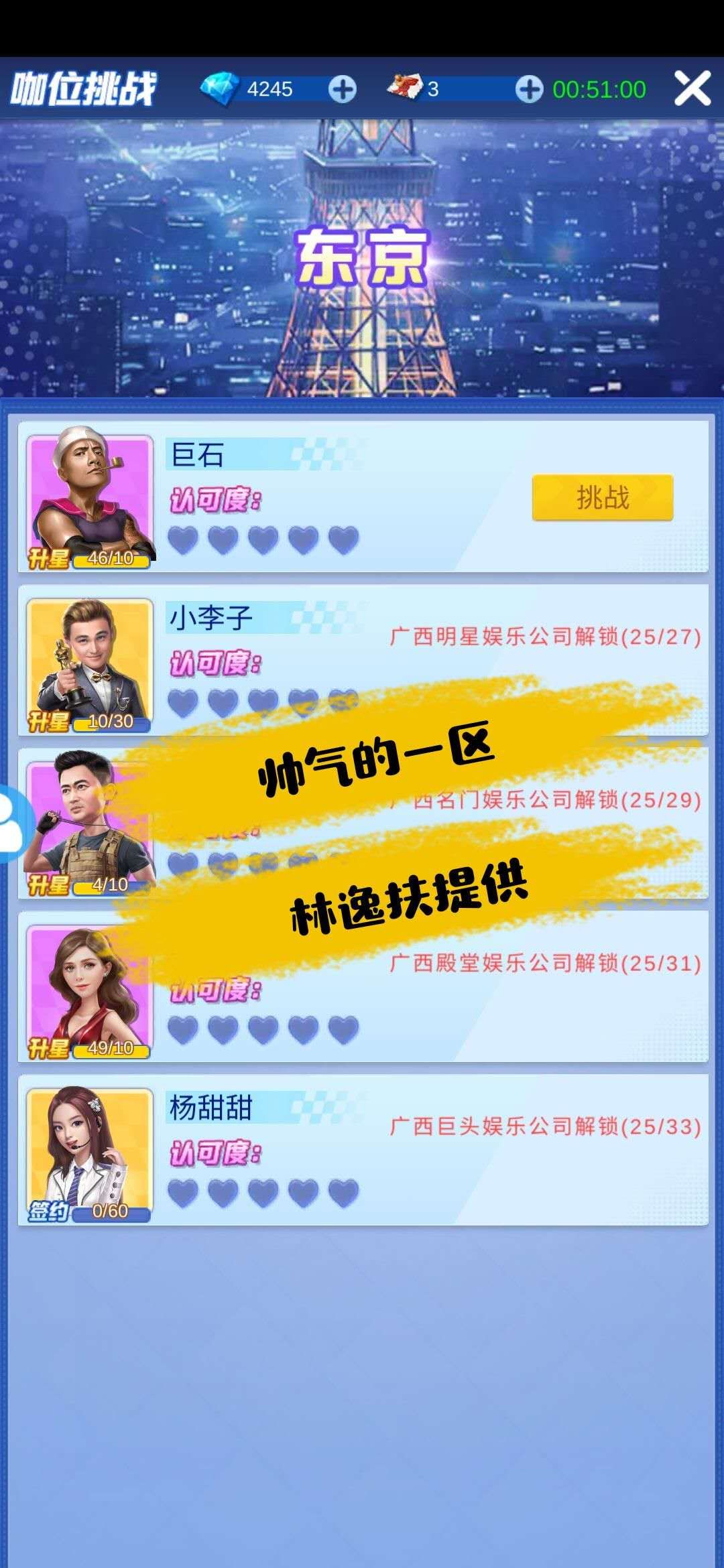 挑战吃力的情况选择:艺人属性加成