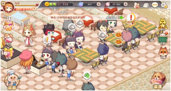 宠物在餐厅内担任经理、厨师、或服务员的工作,支撑着餐厅的正常运转。任命高属性的宠物可以给餐厅带来更多收益,但同时会需要付出高于普通宠物的薪水。