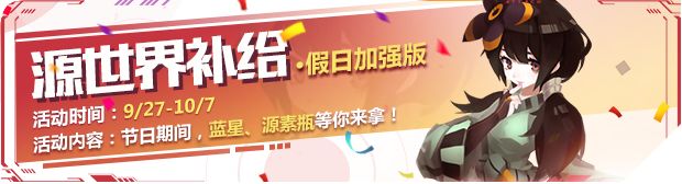 9/30-10/8,活动期间每日登录都可以领取五连抽、源素瓶等超值福利!累登7日更有五星角色-失落之子轻松得!bong!用他的大范围伤害为你扫平源世界的障碍叭!