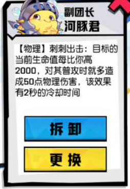 副团长解析:头盔怪:来自英雄和野怪的每次伤害减少150。这提高了英雄的生存能力和打野能力。配合携带河豚君更是帮助英雄提升了生存能力,河豚君可以帮助英雄在对线时面对比自身血量高2000的敌人,按比例提高英雄对其的普攻伤害。