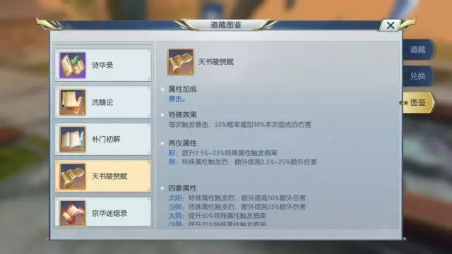 离山剑宗与天机阁都是拥有高爆发的物理输出,堆叠暴击的天书陵赞赋必不可少!道藏属性以暴击、物理攻击为主,搭配攻击、暴击时触发的特殊效果,使得这两个职业如虎添翼,更快地击倒对手!