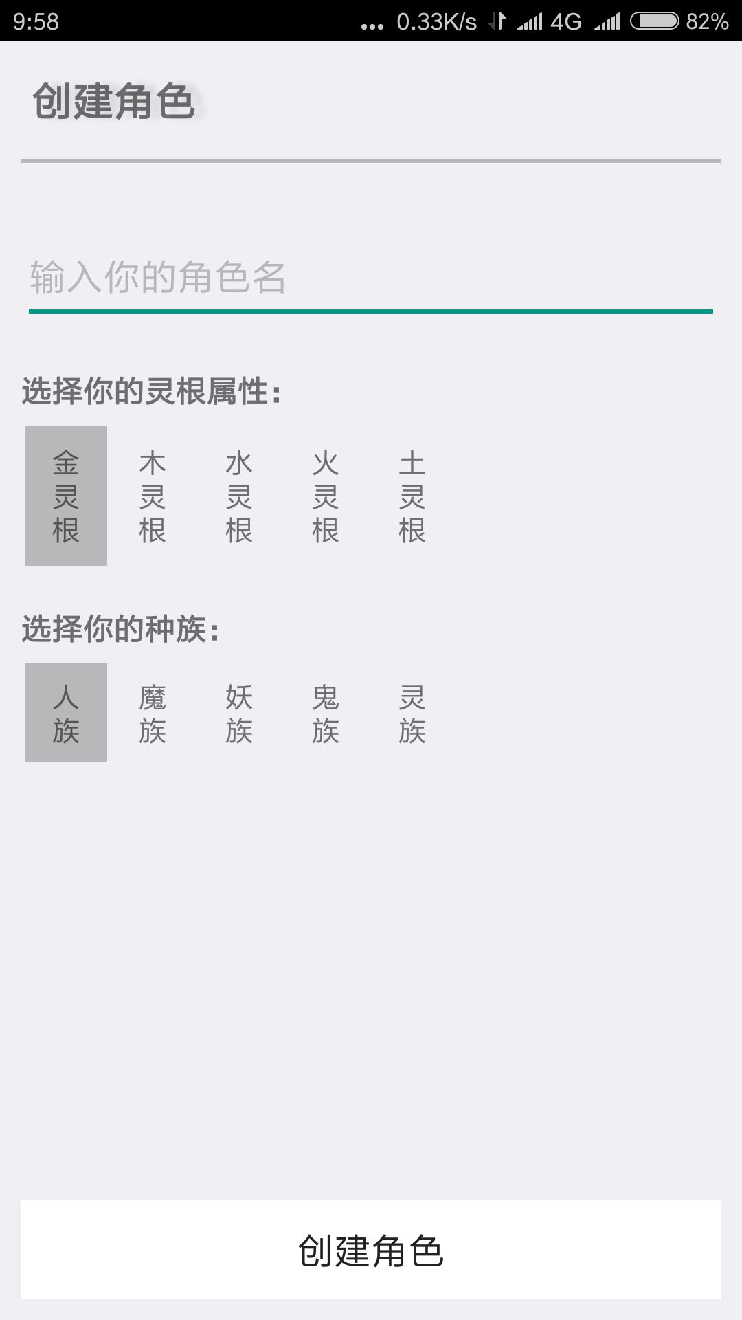 创建角色时种族会限制你门派的选择,目前无法加入不同种族的门派(目前灵族门派还未出世,请慎重选择),灵根未来应该也会限制功法选择,也请慎重选择。门派未来也有散修道路,但目前还不支持~_~