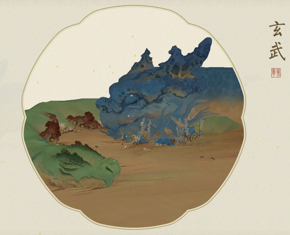 玄武为北方神祇,蛇首与龟首并存,背负甲胄,以一甲子之期南下巡视。正于巡视之中,突遇海中火山爆发,烈焰冲天。玄武本性极寒,偶遇此等异象,便自吃痛,兴起无边风浪。随后被一块碎石击中头部,从此沉睡。若只是受到火山异动影响,怎会沉睡如此之久?玄武沉睡于海底之时,对海上异象一无所知,直至幼兽亲自将困住玄武的宝具移除,玄武才从漫长的沉睡中苏醒过来。