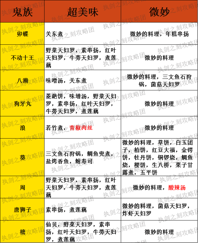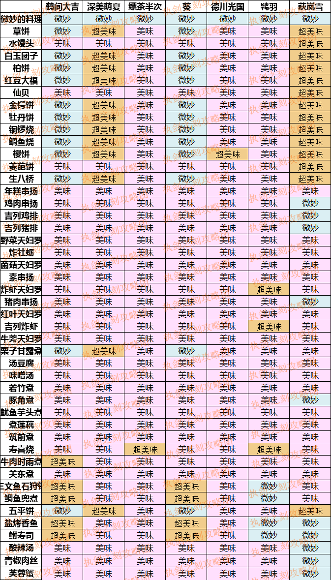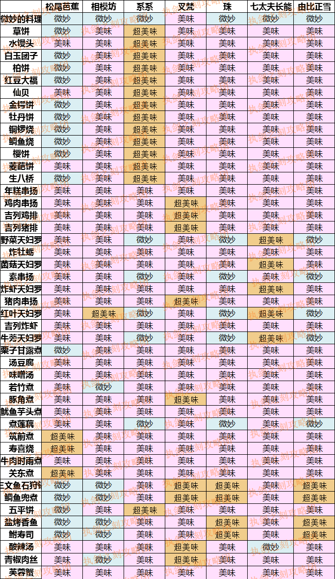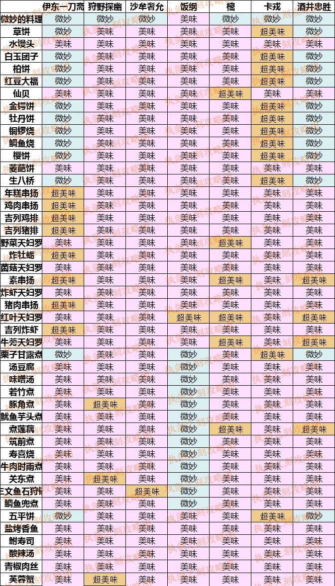 【攻略组】武士料理喜好一览(新增年宵市料理)