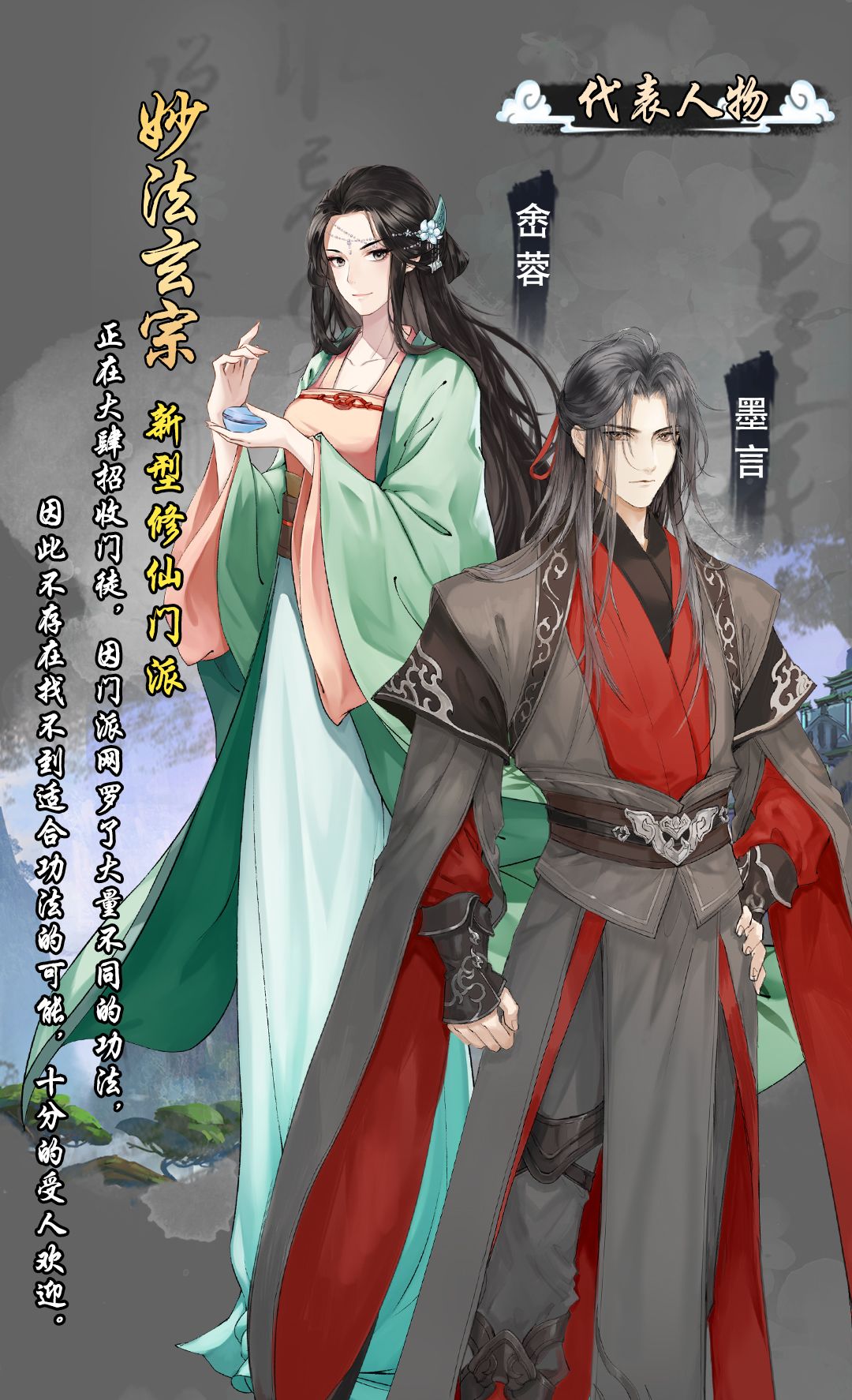 代表人物:妙法玄宗三师兄-墨言、妙法玄宗二师姐-峹蓉