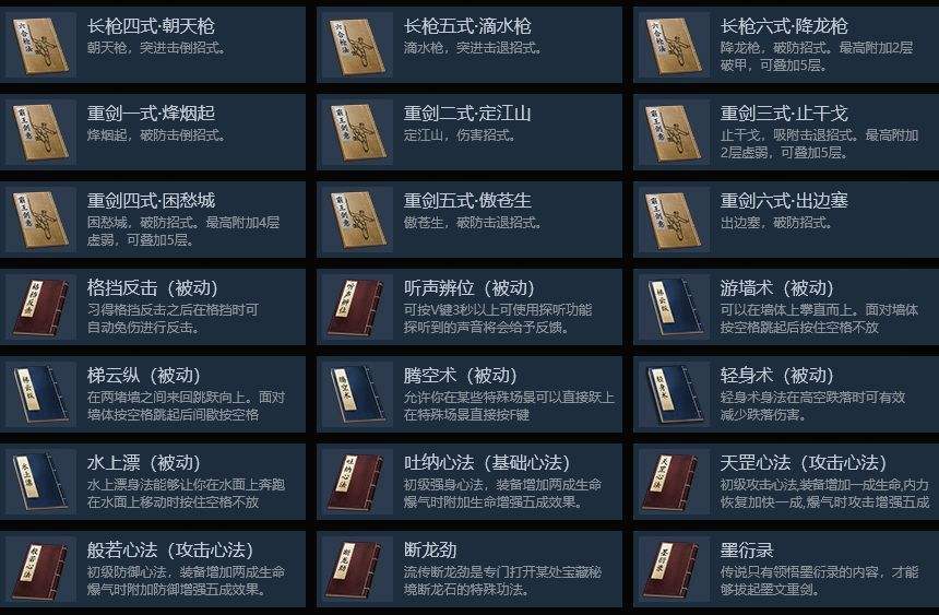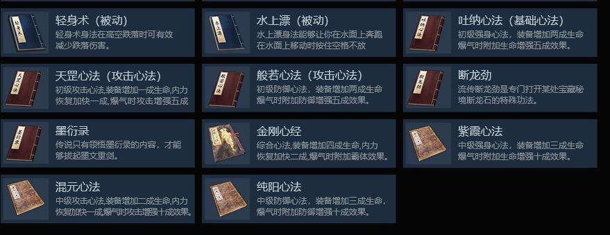 心法技能是游戏中比较难获得的,但是对战斗带来的帮助却是实打实的,心法有攻击心法和基础心法,攻击心法装备后增加生命和内力恢复,爆气候则增加强大的攻击和防御效果,获得了这些心法的话战斗层次就比敌方高处了不少。
