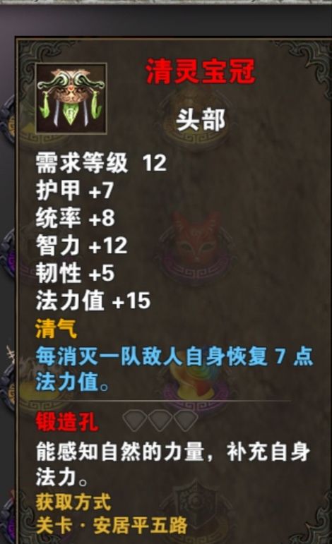 7.清灵宝冠:较高的获取难度,造成较低的出场率。清兵回蓝机制,副本大佬吕布见过,也是智将常用装备之一。