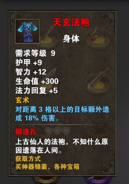 10.天玄法袍:高智力加成,高伤害加成,高法力回复,完美契合各种法师英雄,非高氪金玩家法师毕业装之一。五星好评!!