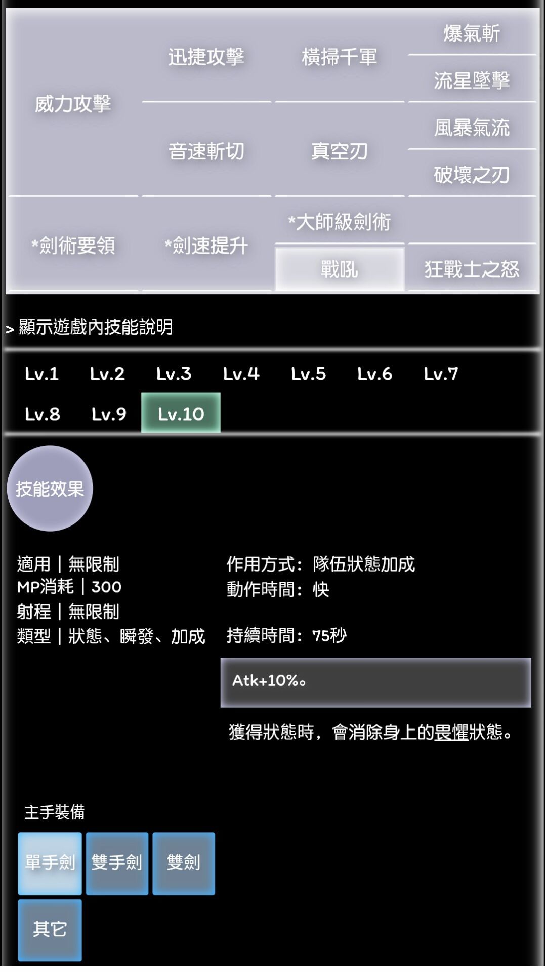 战吼会增加10%的攻击力,很棒,大师级剑术的不点也是技能点不足吧,其实很想点满的。