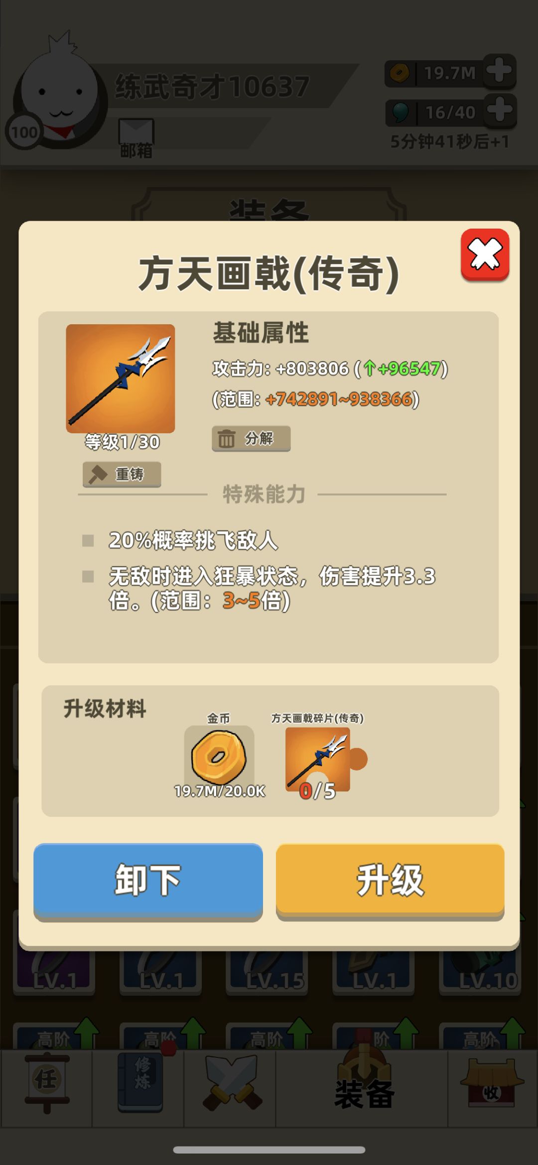 1.第一个难点我觉得就在15关,双边刺客,这个时候一定要警惕,因为我们的攻击力在这里还没有很高,所以一个不小心就是被一刀戳死。(左左右右快打)