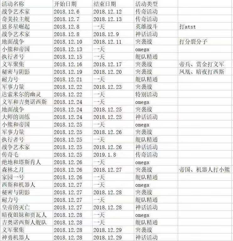 2018.12活动日历