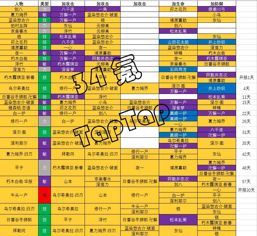 以下内容不适用氪金的伙伴,可以绕行了,只是个人闲来无事做的,方便查看和对照而已,很喜欢死神,漫画已看完,动画……唉╯﹏╰