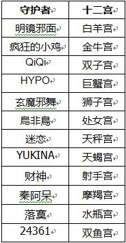 12名导师将成为黄金十二宫的守护者,其他非守护者的玩家报名即可成为挑战者,加入挑战者队伍。