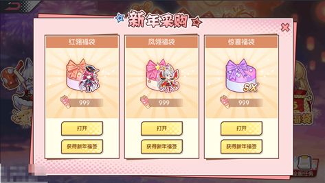 3、惊喜福袋:可获得SX契约书任选礼包、“新”&“年”任选礼包以及各种战姬养成道具;