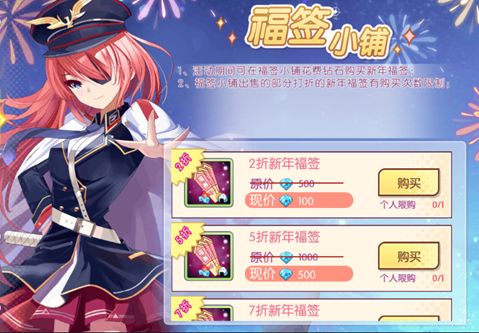 2、凤翎福袋:可获得凤翎契约书、“新”&“年”任选礼包以及各种战姬养成道具;
