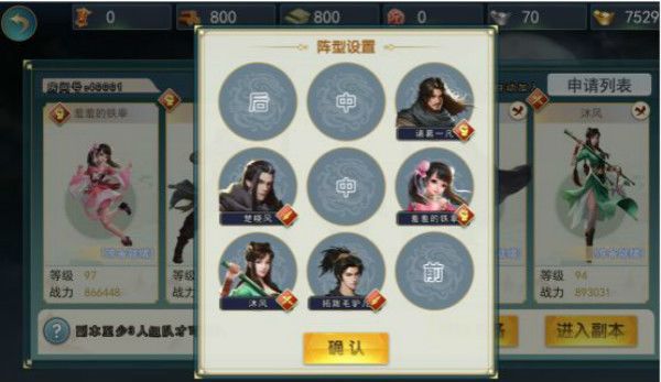 18,所有组队玩家的主角必须上阵,副本内玩家可以通过【队伍】按钮随时调整阵型;