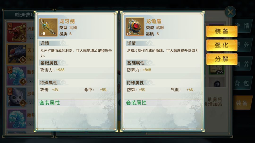 整体上宠物装备从合成到升级,再到分解都是固定属性,也没有失败率,不用拼运气,只要材料够就可以获得装备并且强化升级。
