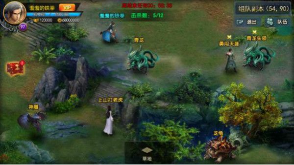 9,单人模式战斗模式为主角带领随从参战,随从不能释放主动技能,可随时更换装备,武功内功,宠物等属性。