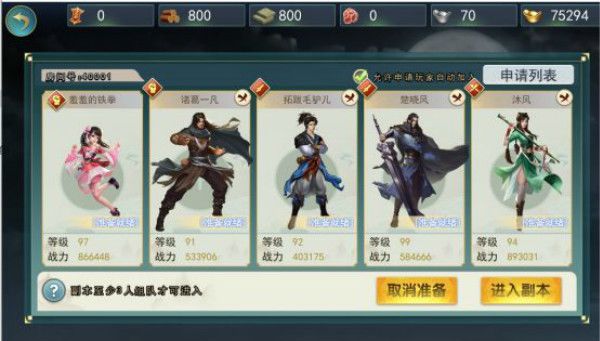 2,组队副本必须组满五人后才可以进入挑战;