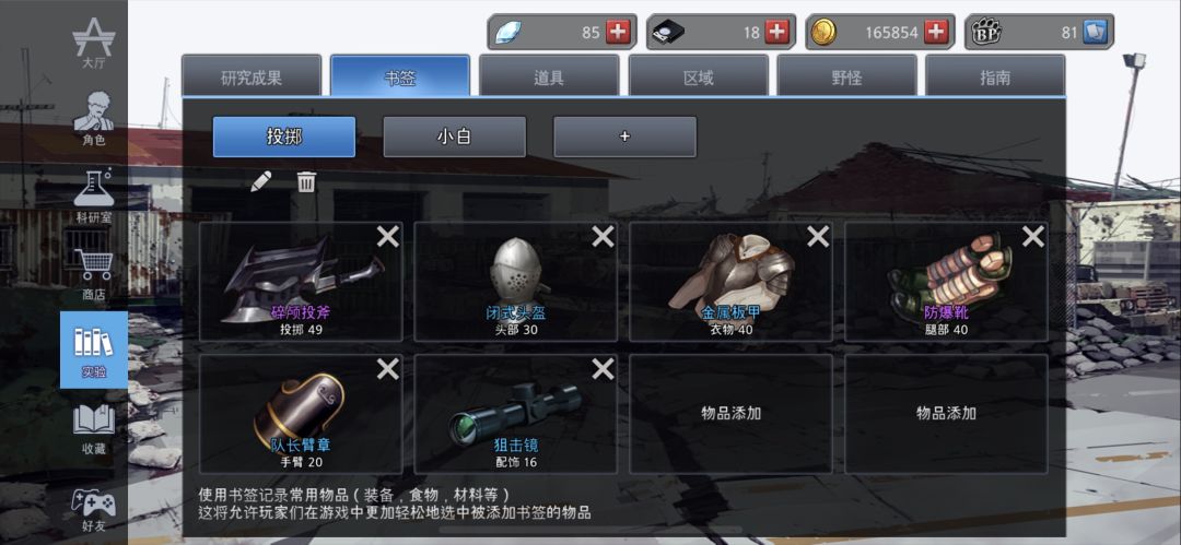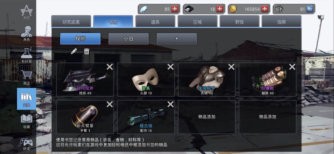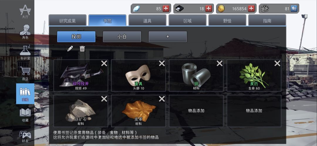抓紧时间搜 理想状态是4废铁 4铁丝 眼睛 臂章 望远镜