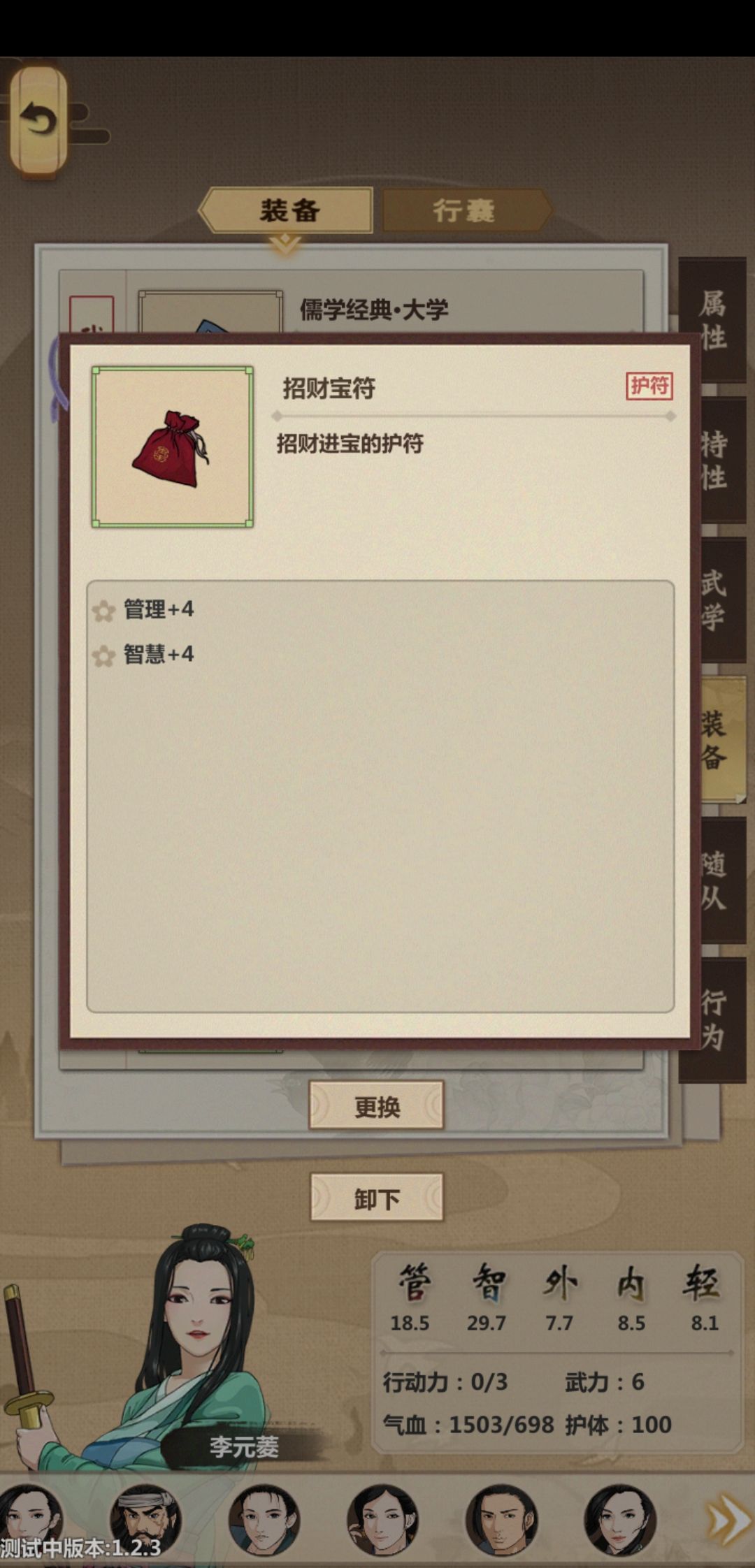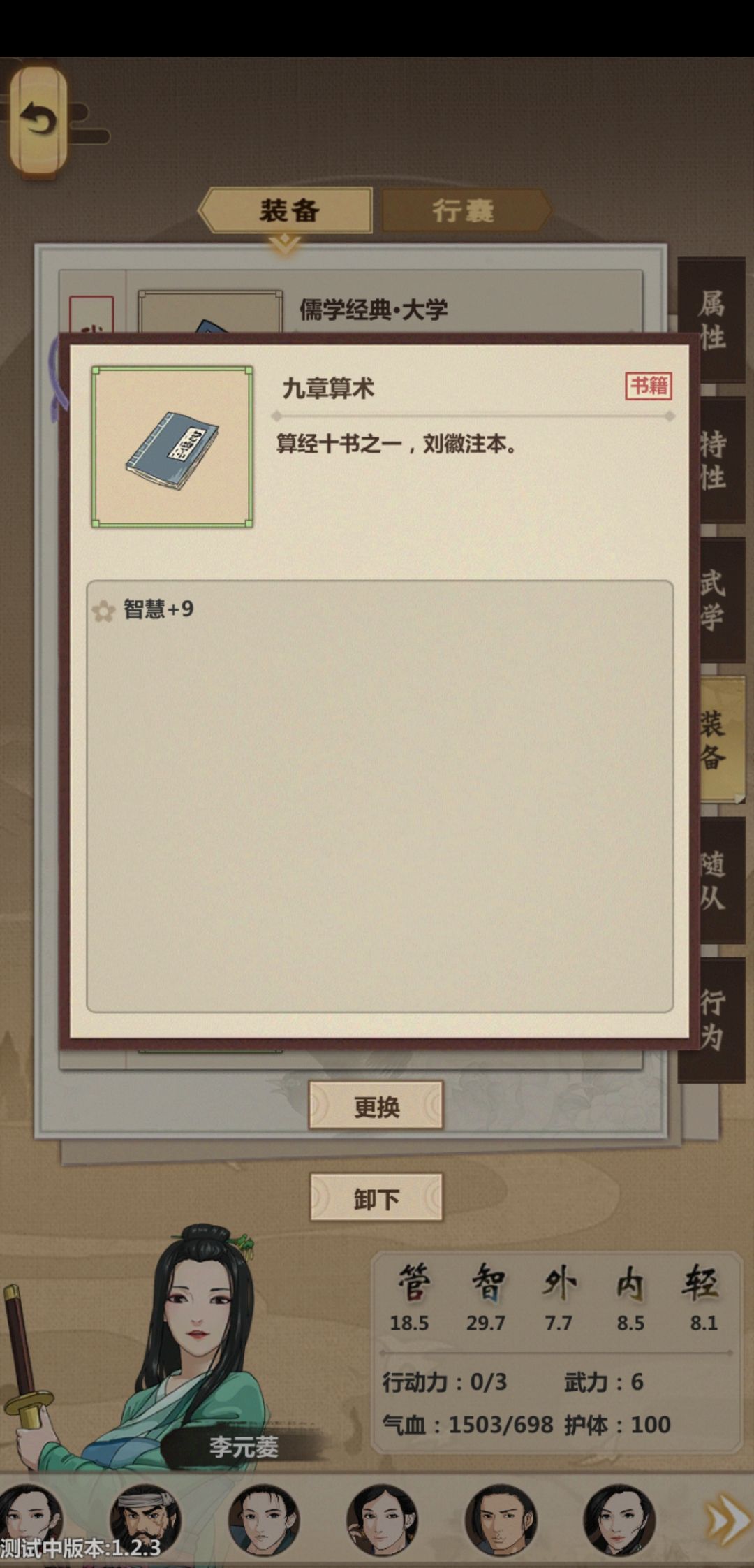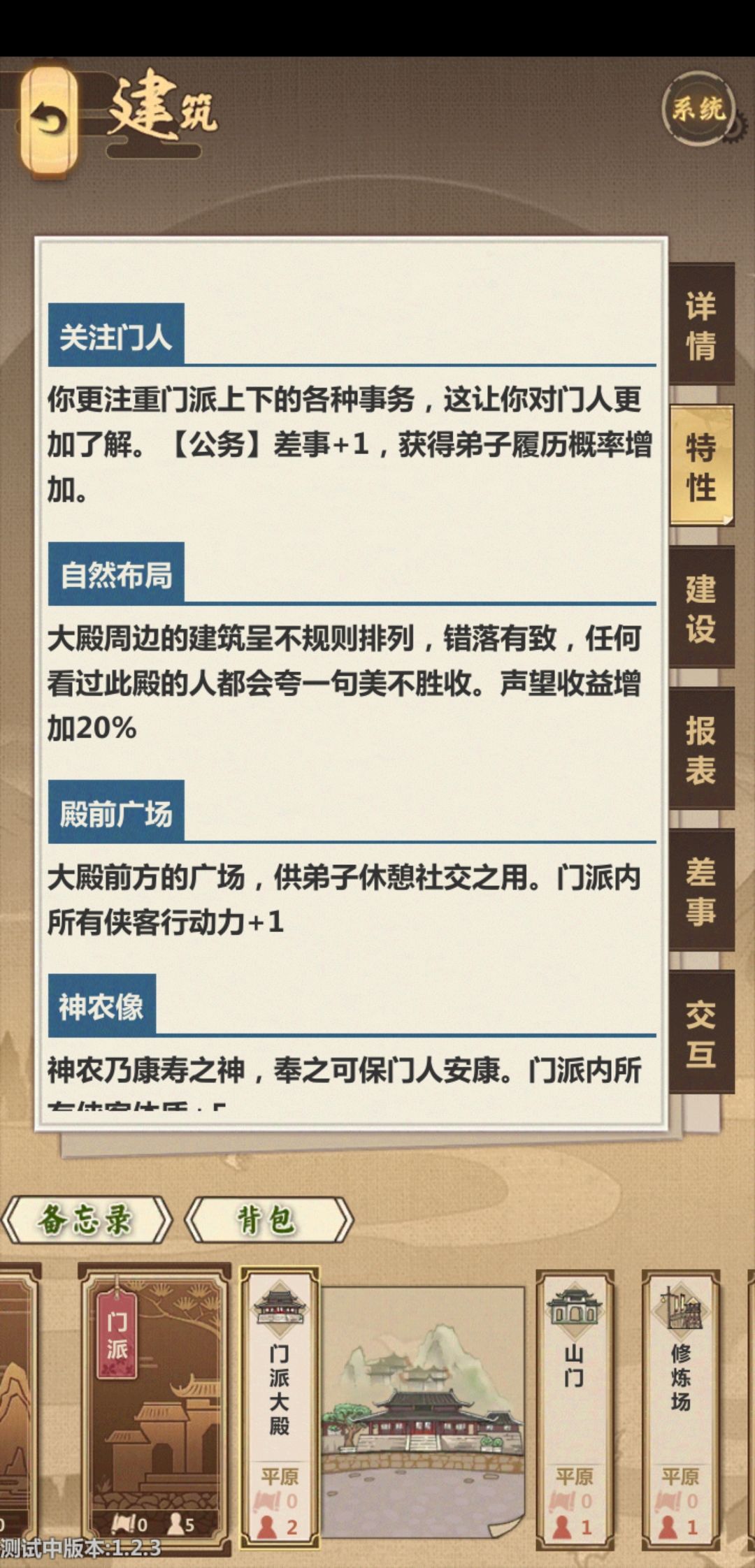 捡了一个大佬的开局档,主要攻略门派方面,武力值我能做到的极限了。1所有战斗基本全给主角,蚊子腿也是肉。2去门派的路上,和前期南北通商一定sl出蓝色体力材料,回门派能做绿色+9体力丹,每旬先吃个9的。3主要升级门派大殿有个加体力上限的。