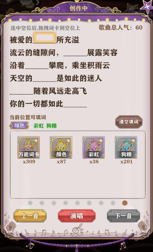 *团长通过在歌曲创作界面使用活动冒险中获得的词卡碎片