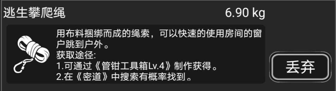 首先、不要被它的名字骗了,总以为一进入一个房间,看看密密麻麻的八级怪,才可以使用它,其实被骗了,遇到怪物用到它的几率非常小,它最大的作用是运输物资和节省时间,不管你爬到第几层,用它回到大楼外都是不费时间的,上图:
