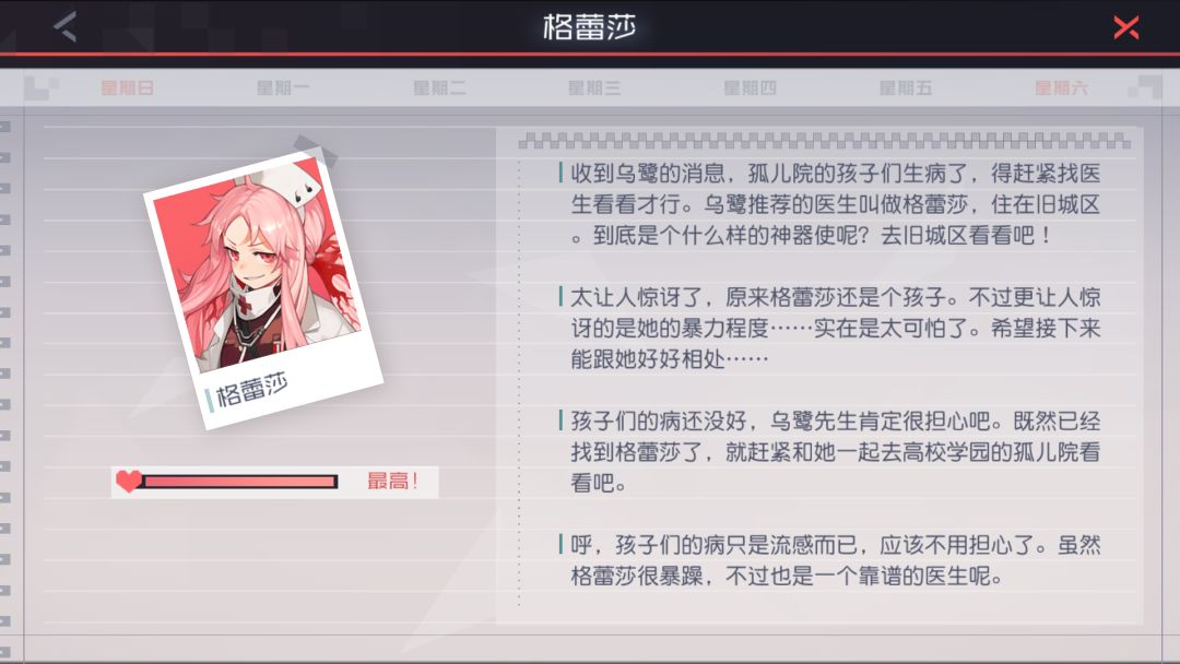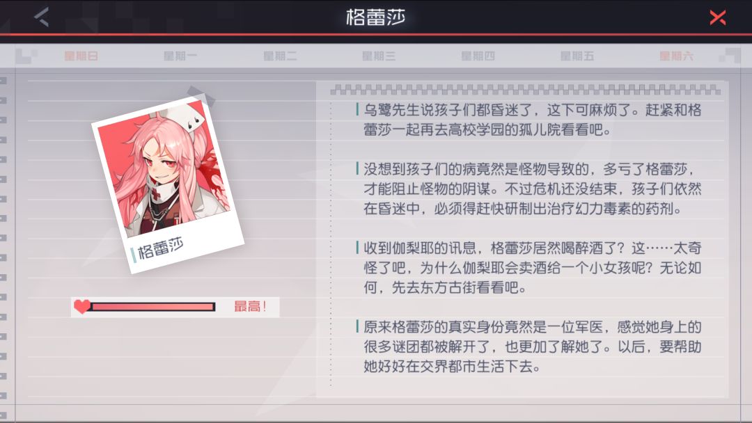好感度20更新消息和手帐,回复乌鹫,带格蕾莎巡查旧城区
