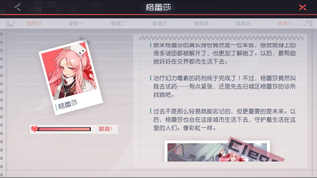好感度100,更新消息,回复,更新手帐,巡查旧城区