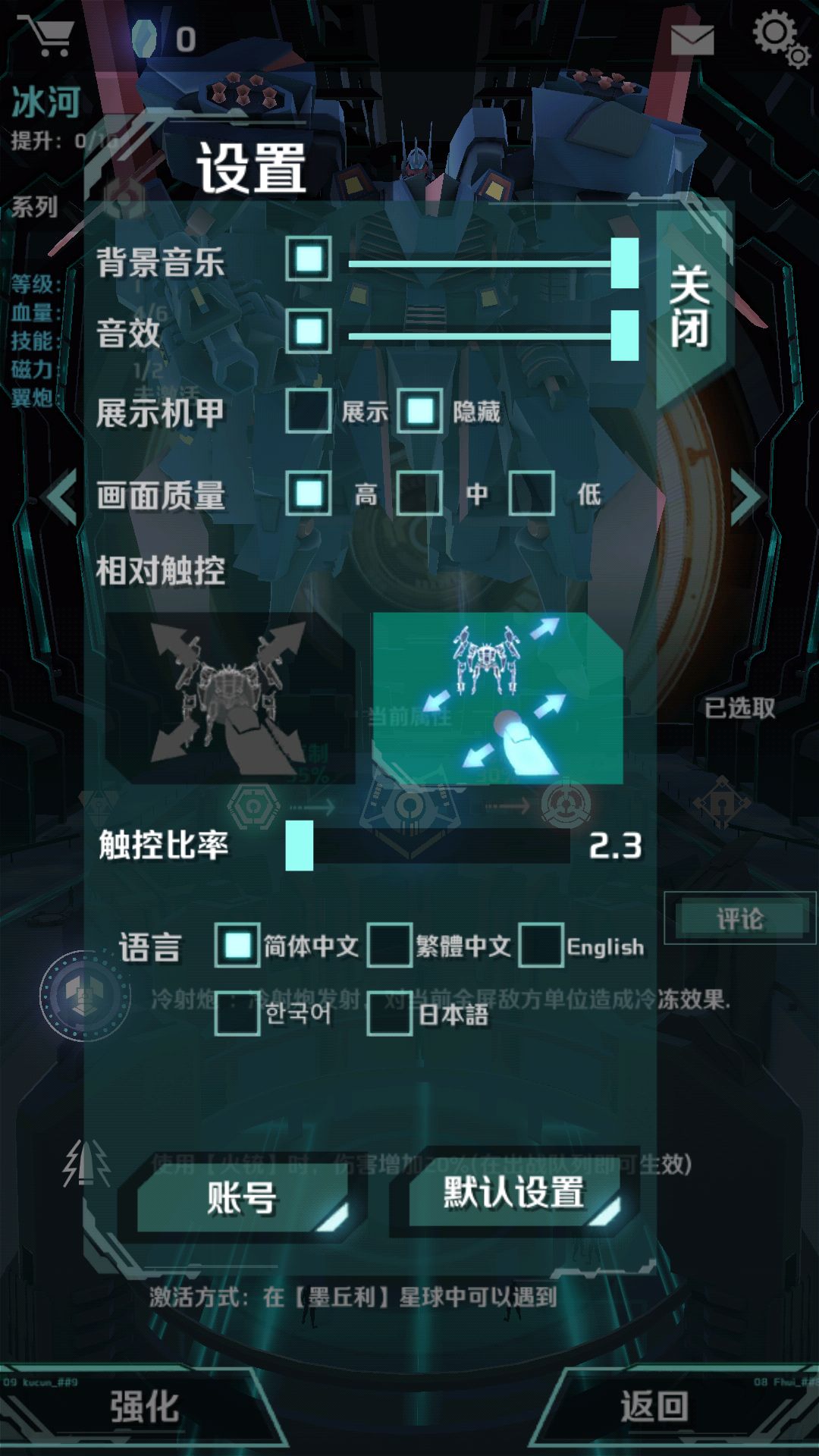 具体操作为:在第二种操控方式下把滑动条滑至某处,再选择第一种操控方式,然后点默认设置