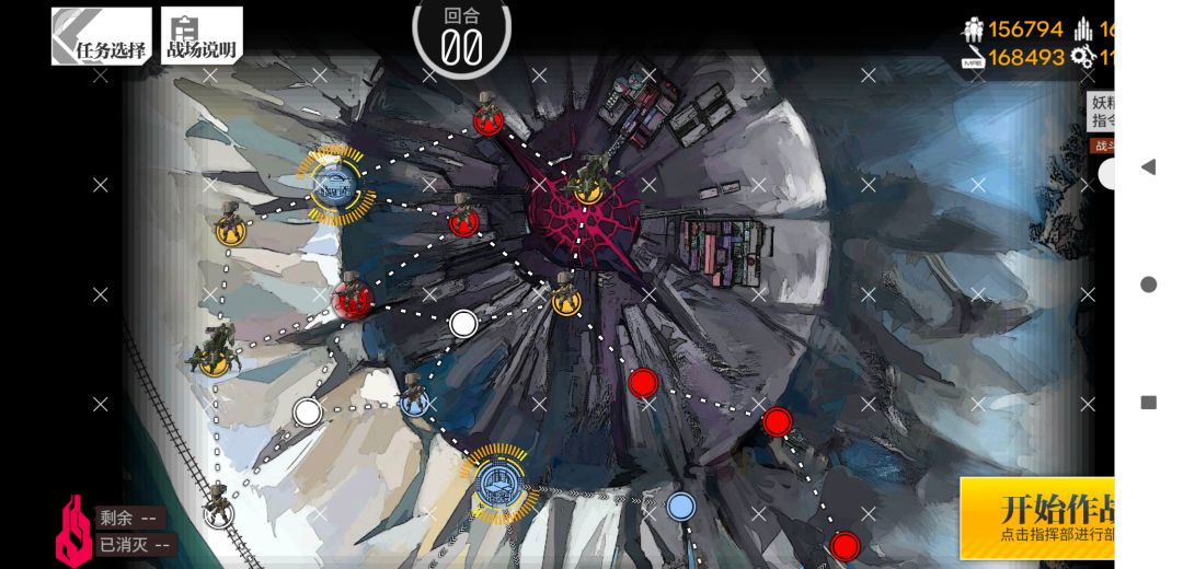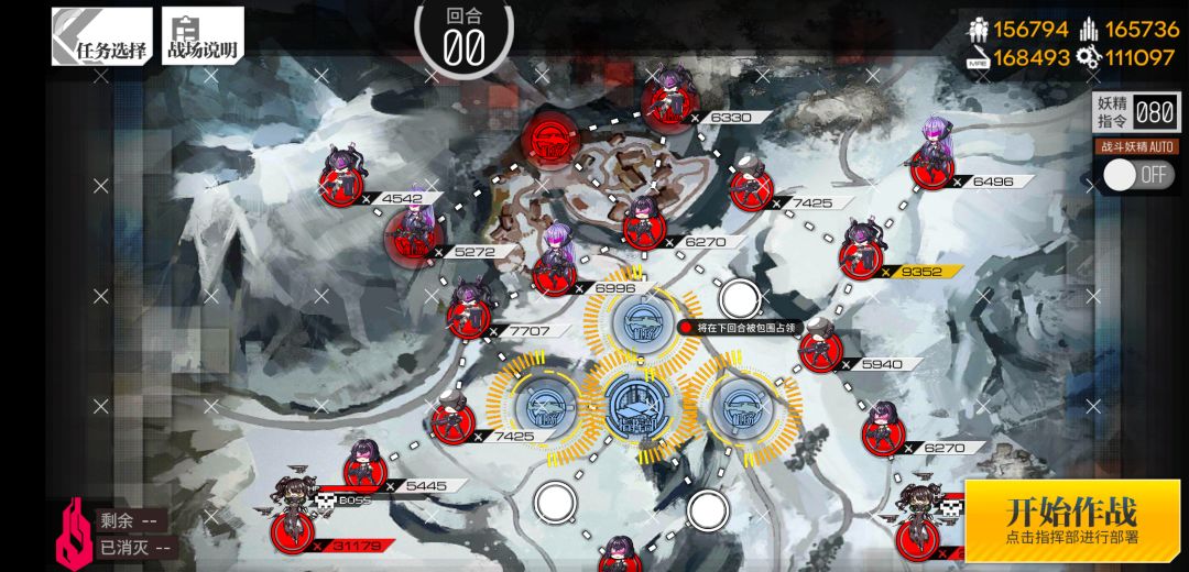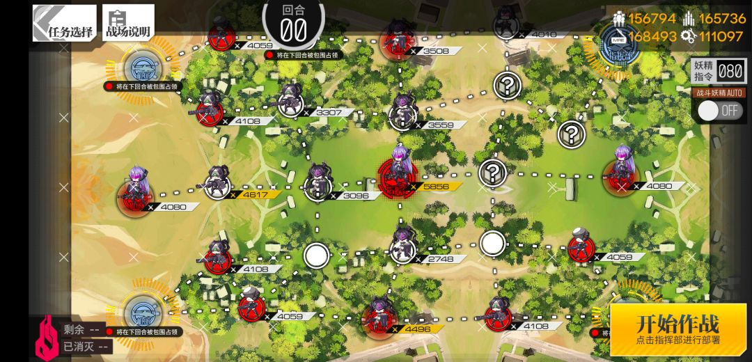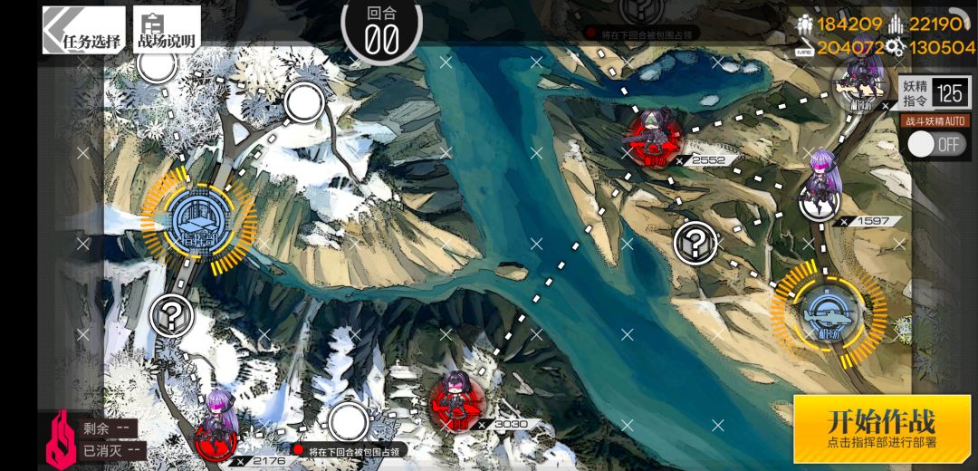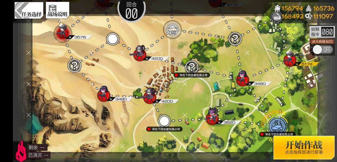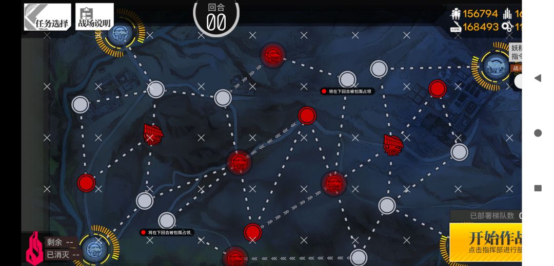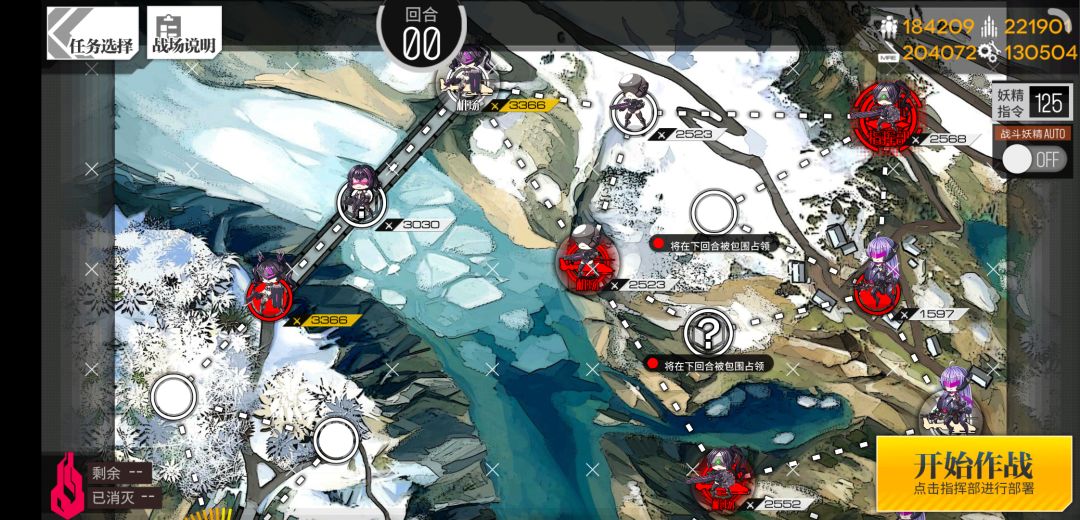 这里是个人的打法,老打法是直接从底下机场网上刷一溜到指挥部结束,但是这一路的敌人都有投弹车很麻烦。个人打法是指挥部放练级队伍,机场放狗粮。第一回合指挥部主力往上走,打到3366的盾那里然后结束回合。第二回合直接占领指挥部即可。