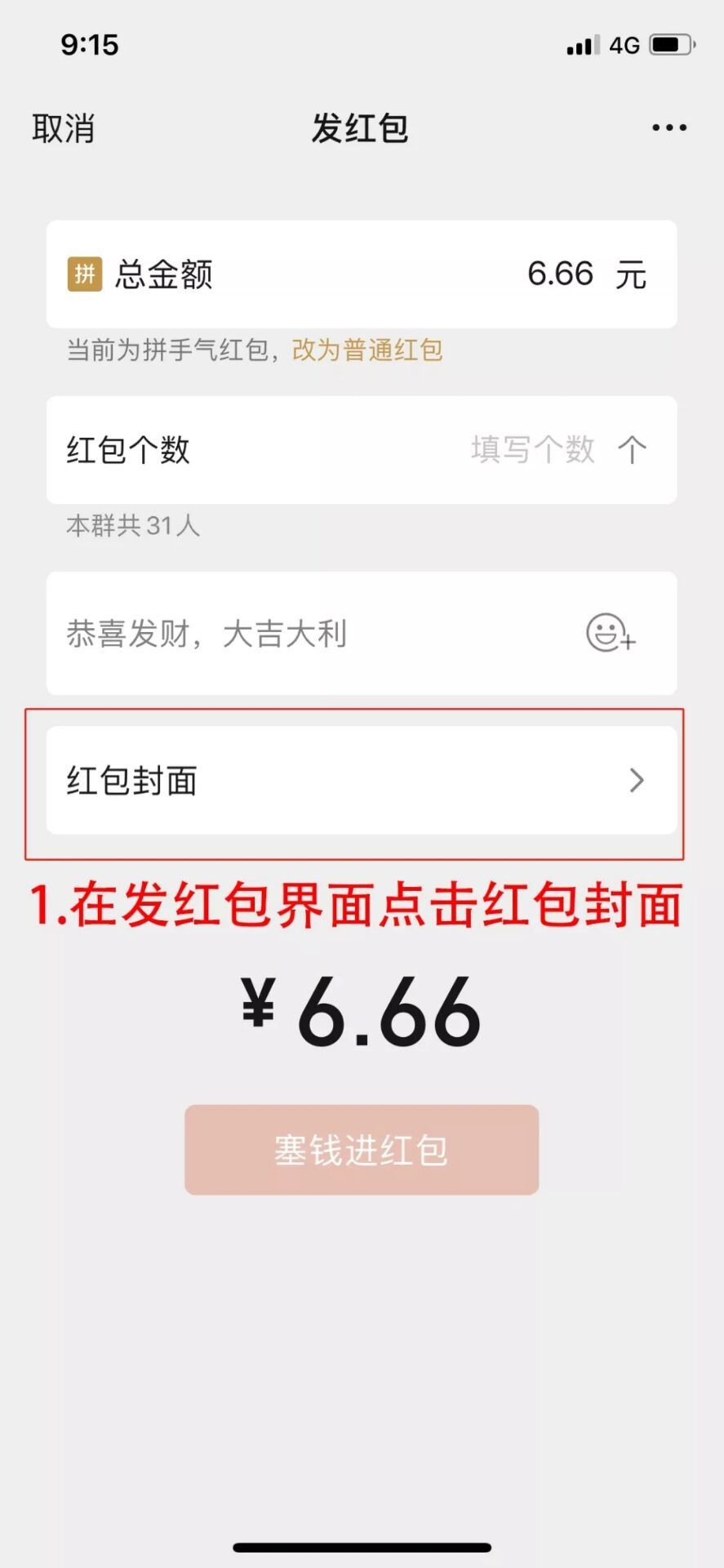 微信红包定制封面使用方式: