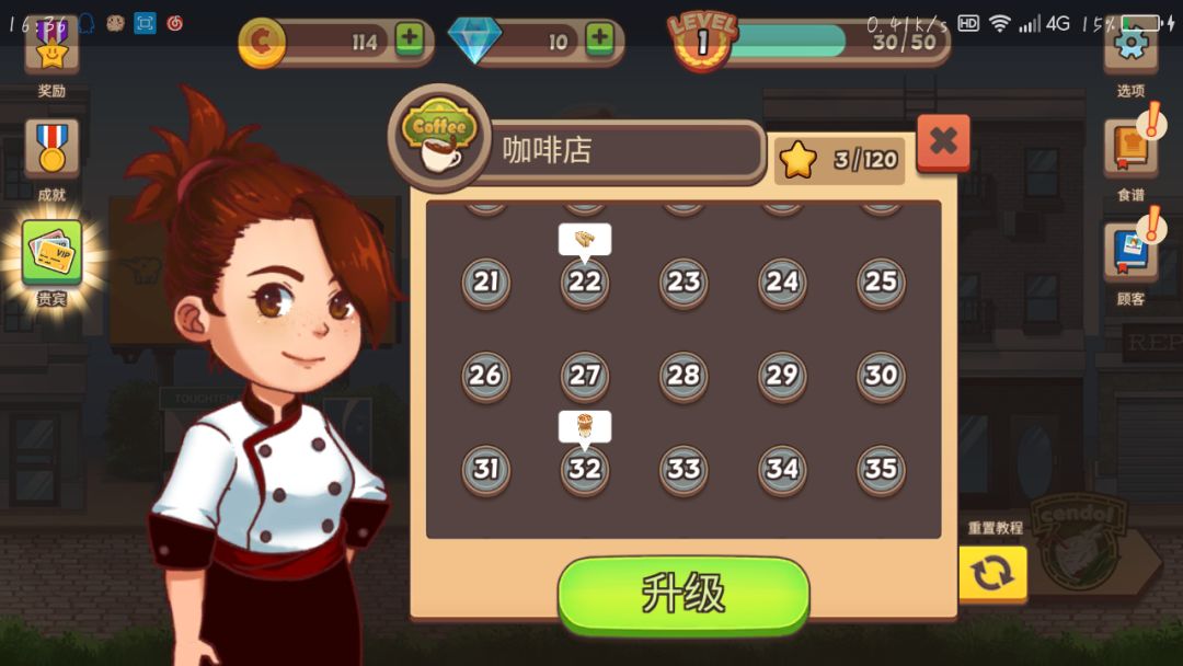然后第一个问题,我用的笨办法:攒钱开店,不过开店之后,你以前通过的关卡还在的,不过会出现2、3问题,至于等级嘛,,,慢慢升级吧,反正升级会给你奖励😌😌😌