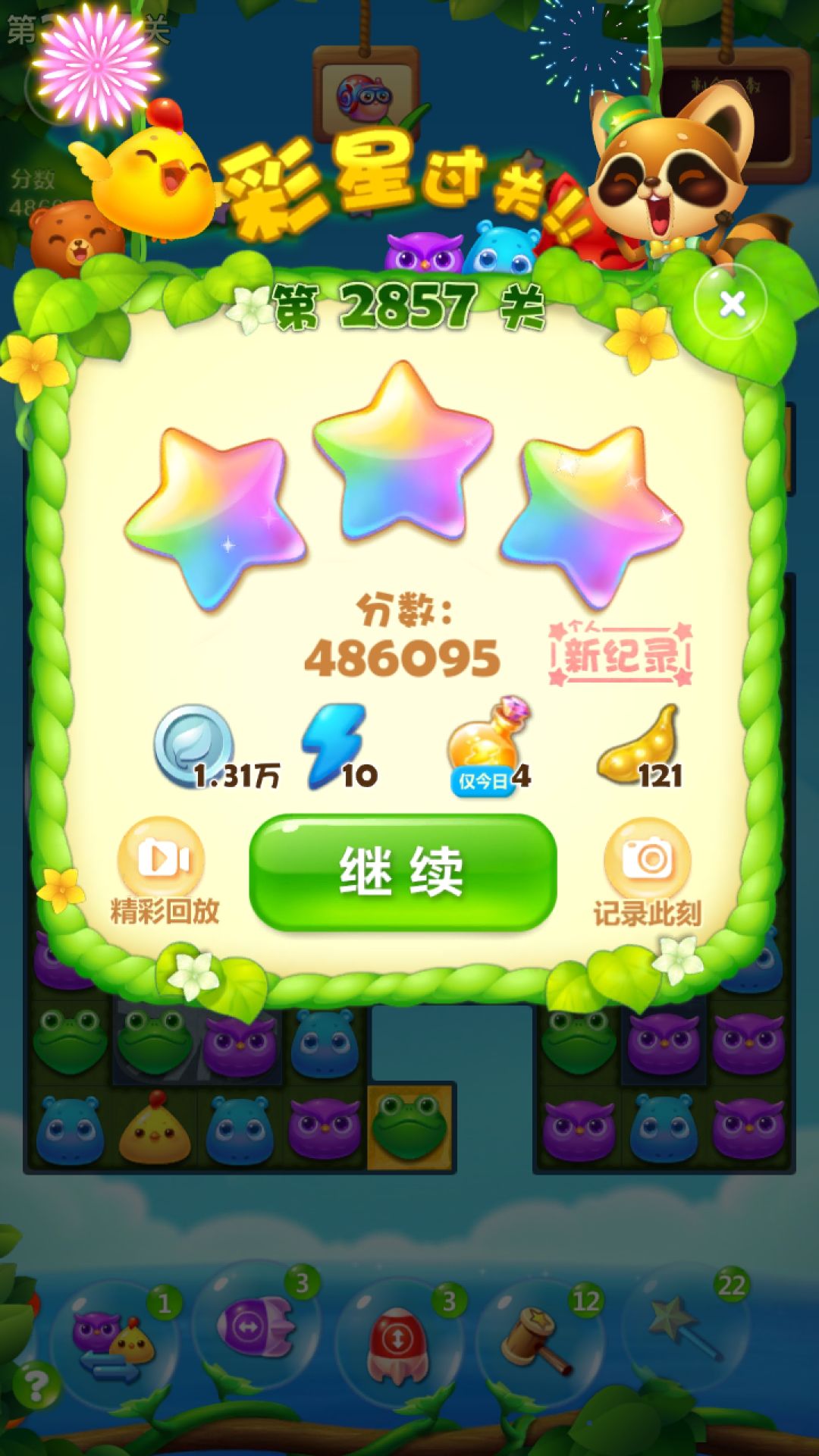 (注意左边炮台除蜗牛了立即往下送,看左下角移动的,消除黄鸡送蜗牛过去,然后就稍微简单点了,右侧消除闪电鸟,直接跑到上头,大家加油)
