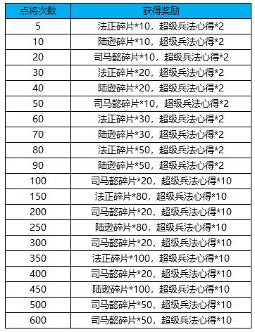 1)玩家在活动时间内累计点将达到相应的次数,即可领取相应档次的奖励。