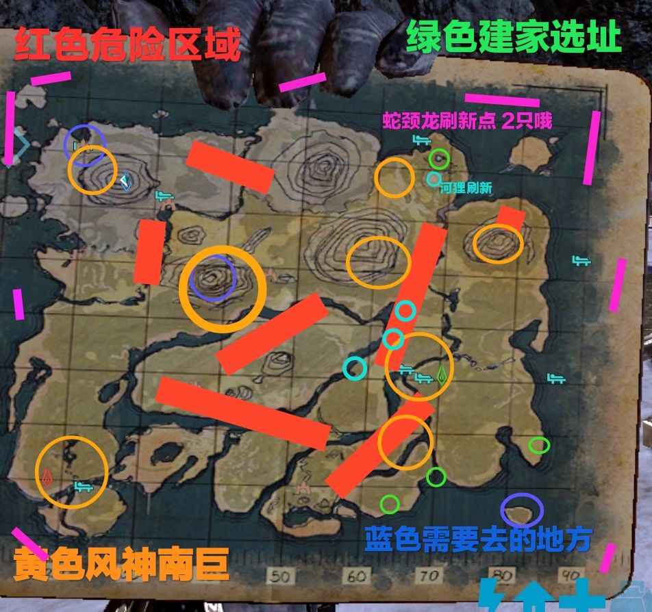 左上海域右上海域周围很多蛇颈龙,精英邓氏鱼(被精英干死n+n次)