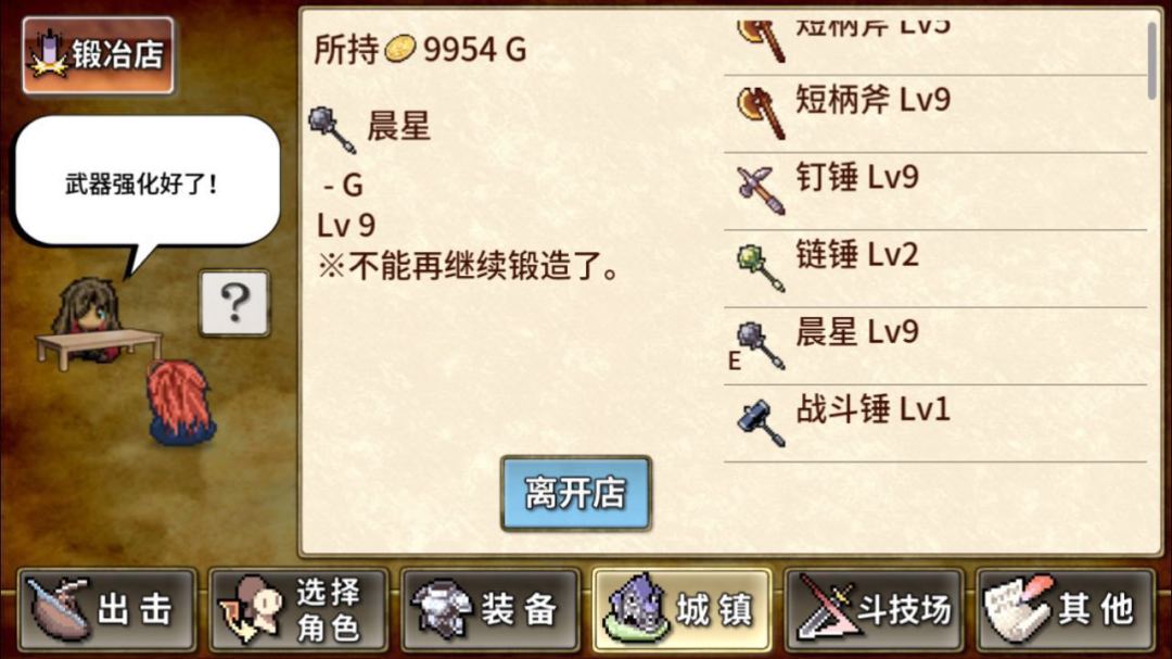 不过好在城里有个锻造店,实在手丢酸了就拿点钱给铁匠,他直接帮我把武器改到满级就行。