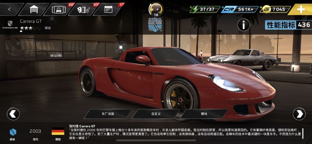 近代保时捷代表之作的Carrera GT,在2003年巴黎车展风光登场,2004年开始售卖。Carrera GT采用V10发动机且以MR中置配置的方式,在当时堪称是用来对抗法拉利Enzo的独家武器。