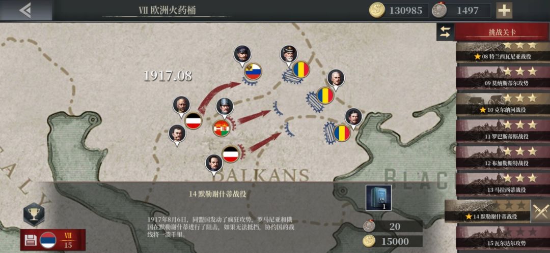遇到难点了,欧洲火药桶,挑战关卡,最后两关。