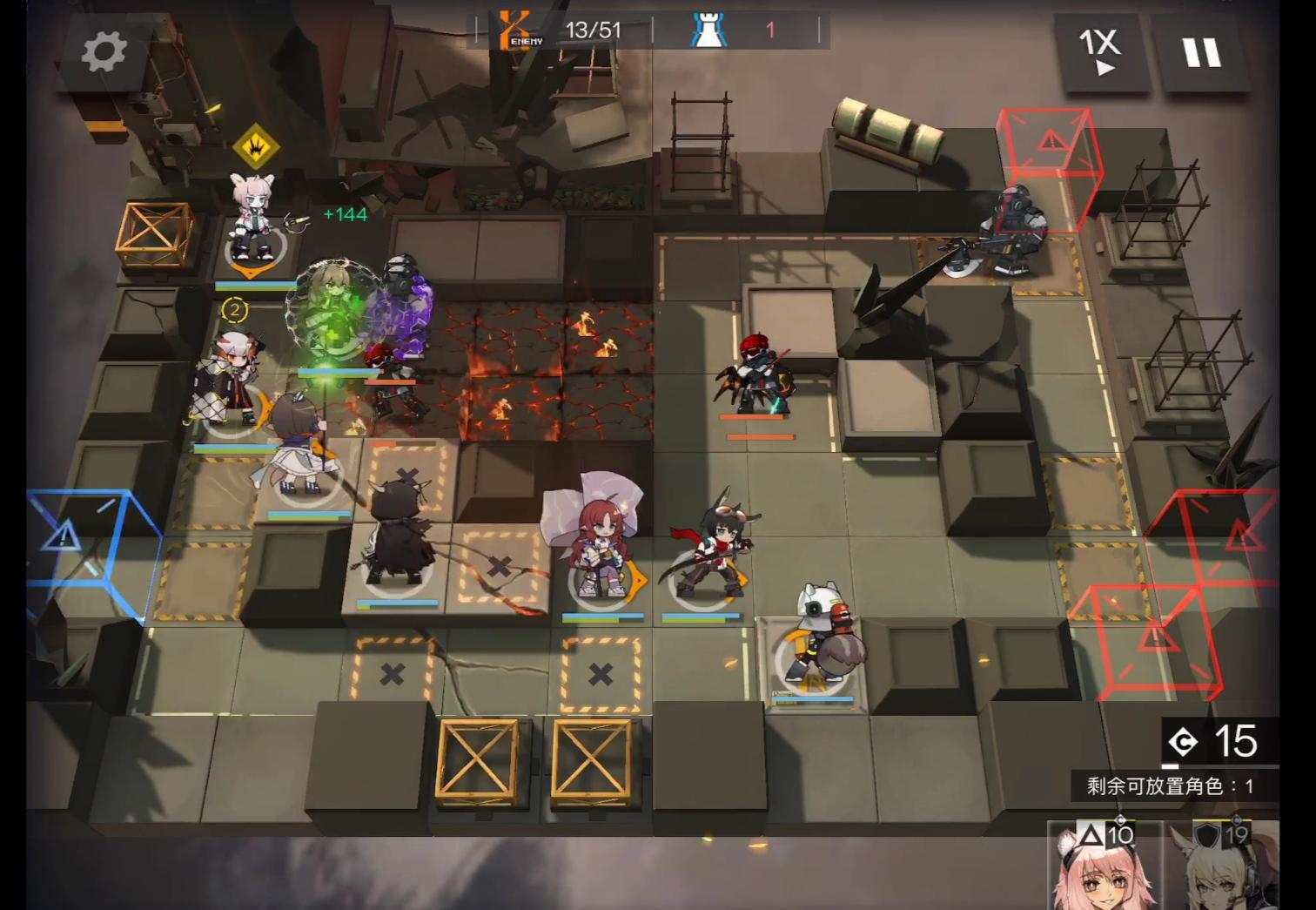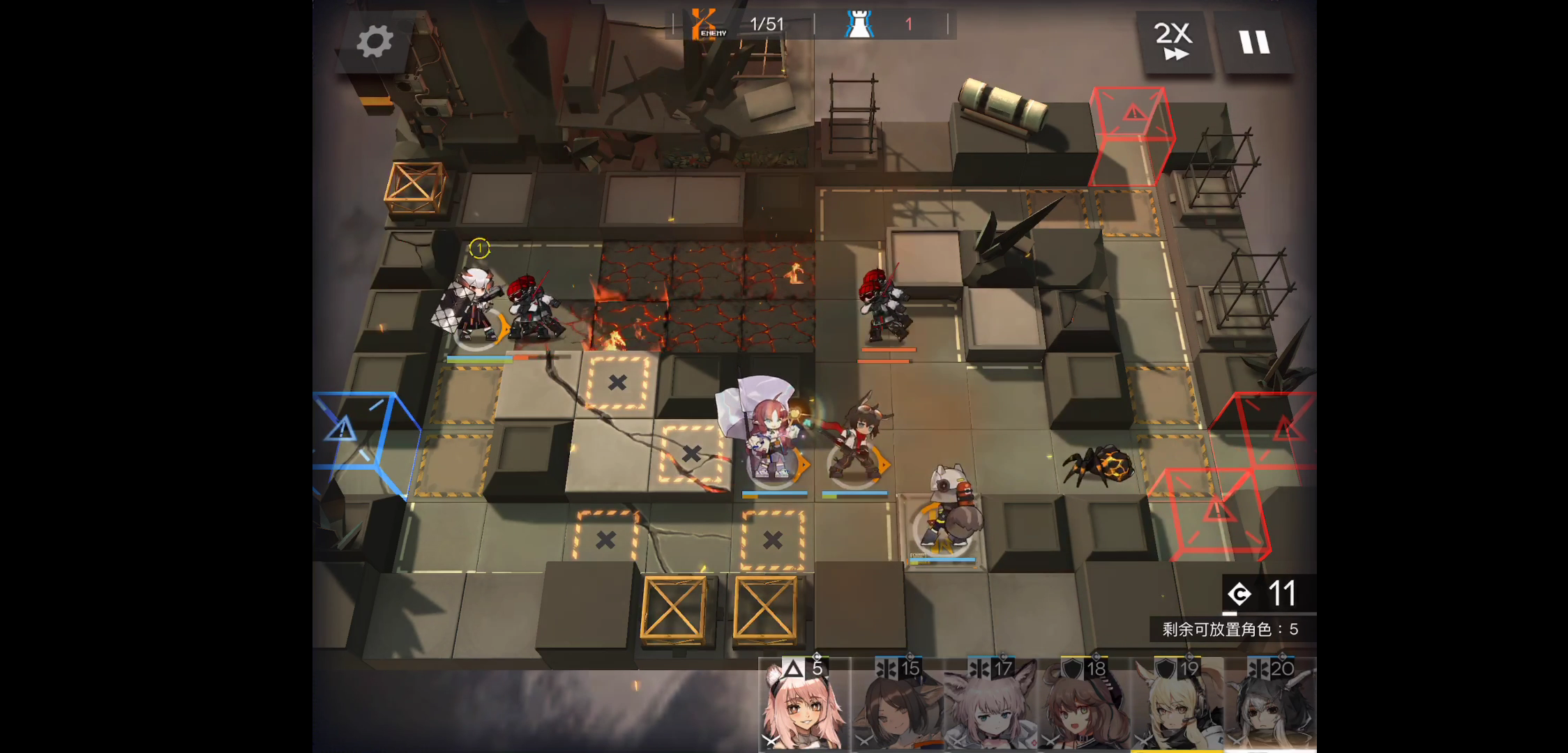 开局就是先放讯使,再放桃金娘,前面都是技能好了就开,然后放上推人角色(阿消),接着是雷赛亚