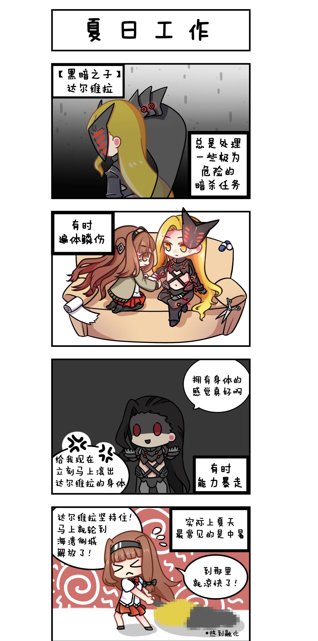 炎热的夏日里进行户外作业,即便是神器使也难逃高温酷暑的困扰,何况是穿着一身黑衣的达尔维拉......