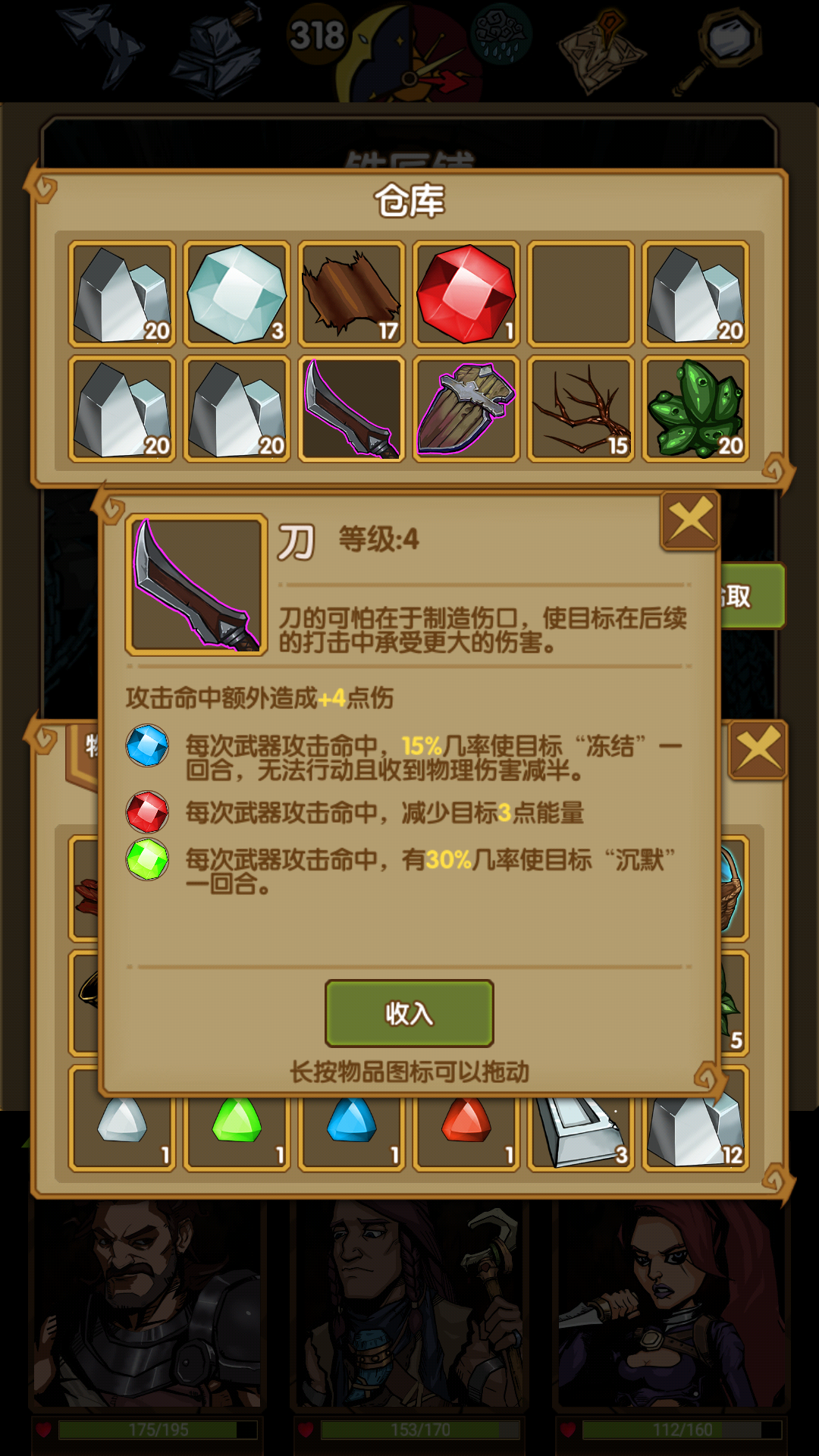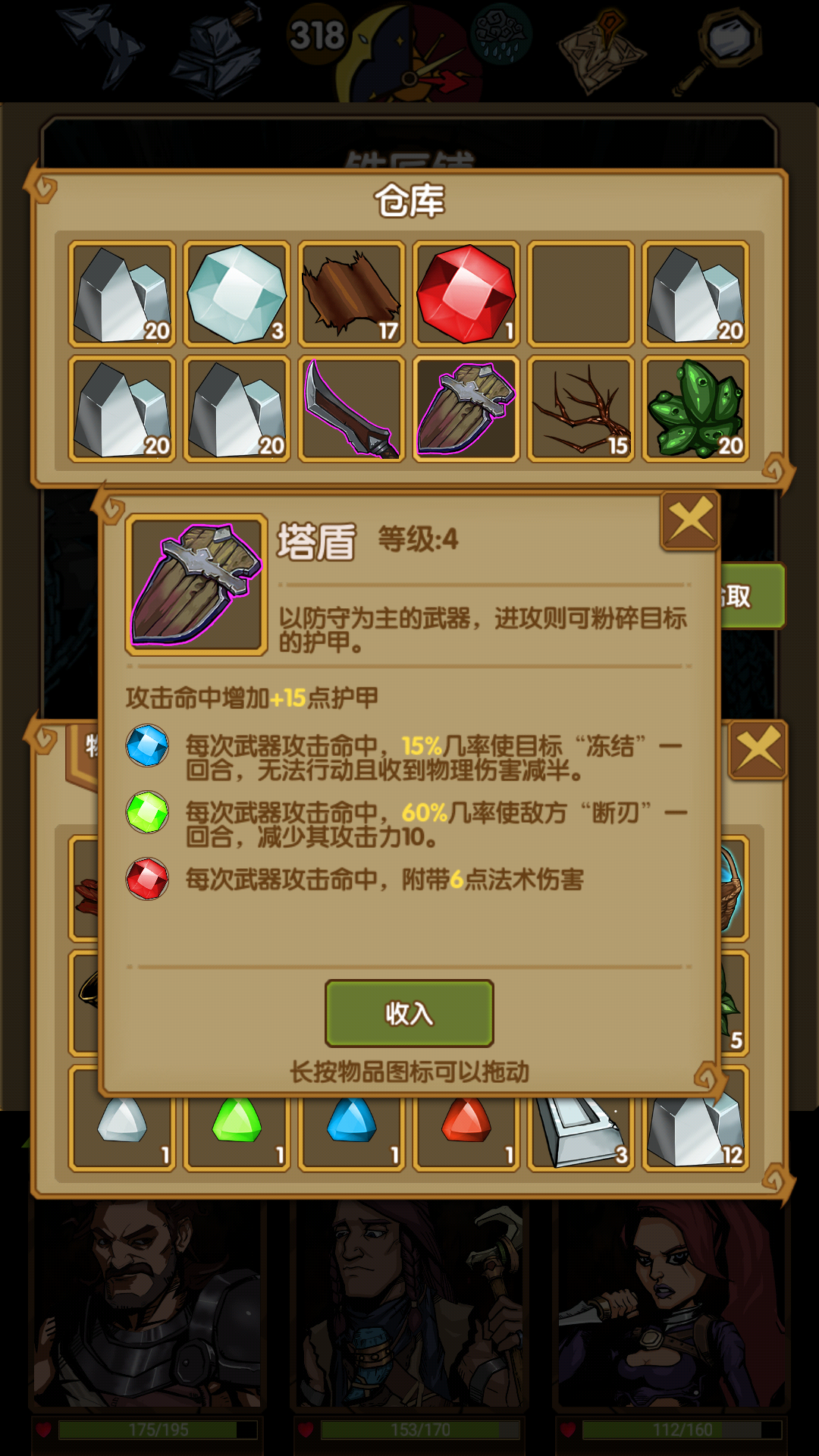 之前一直纠结于怎样发展快,后来发现运气和耐心才是重要的。目前这局在耐心刷锻造,做装备,只修复了篮子……没遇到镐头。锻造除了披风都满了,这局到现在做了四把顶级匕首,一把顶级杖,一把顶级刀,两面顶级盾牌,一把顶级锤子,四件顶级衣服……砸了快四十块大宝石了,没镐头的我肝的还挺上瘾,哈哈,展示下成果啊,留下的都是属性喜欢的,不知道是不是可以进第三关了?