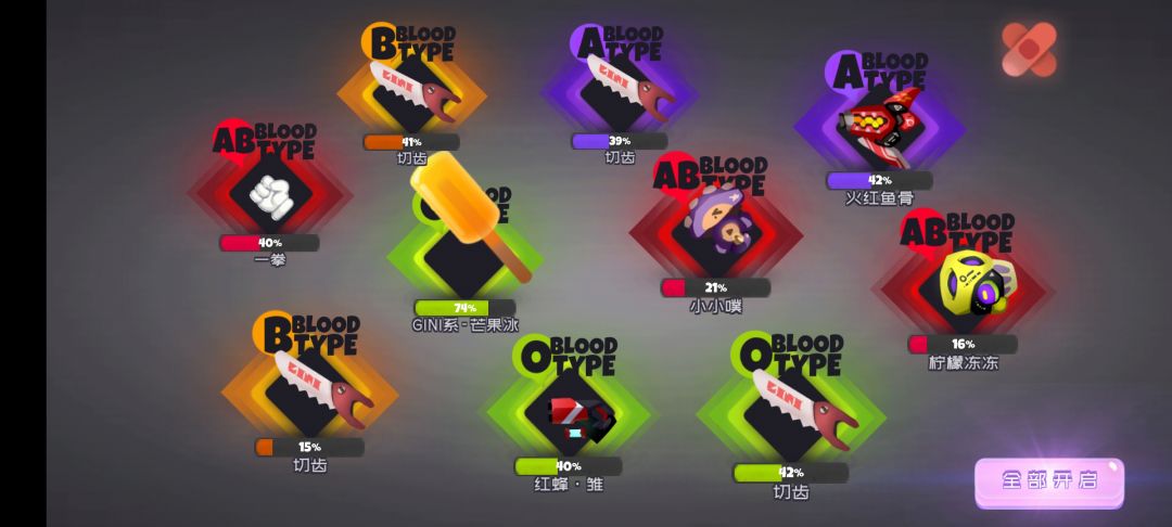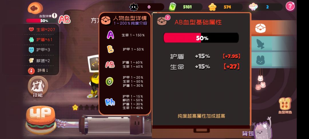 宠物:蘑菇a血型为4攻速5攻击,光环宠物都叠护甲糖(光环宠物为灯,云,鸡块)