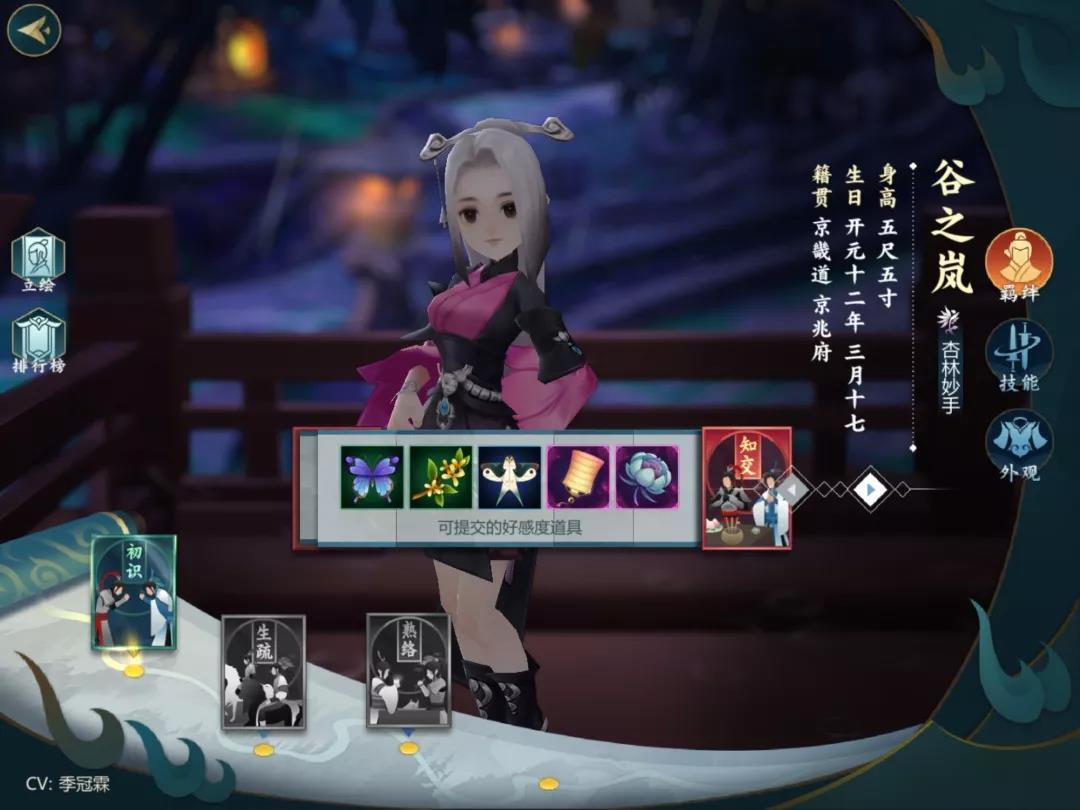 在“知交”的功能里,少侠可以赠送相应的物品给侠客,以增进好感度哦!