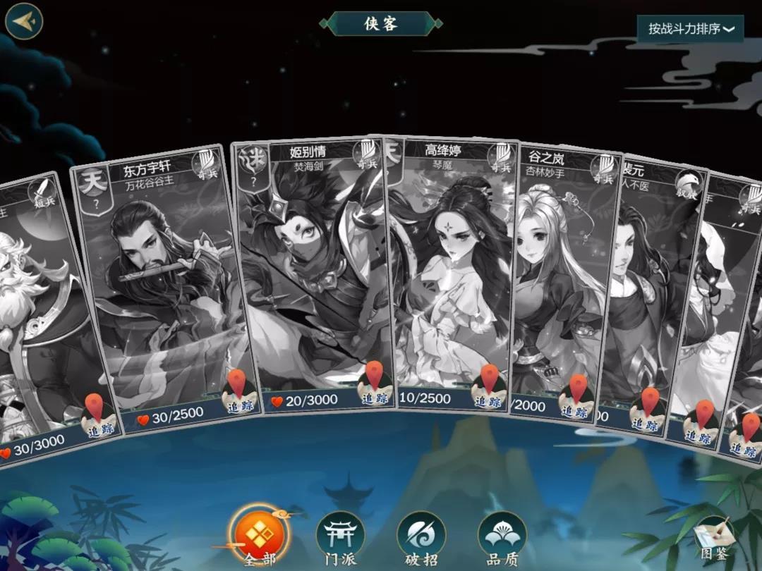 A.“解锁”与侠客的缘分。当少侠与侠客结缘之后,【侠客】页面会出现相应的卡牌。虽然卡牌呈灰色(代表未招募的状态),我们可以在该页面追踪侠客的位置,向其赠送礼物。